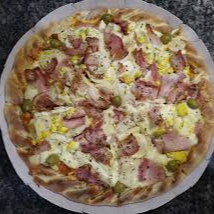 Molho, mussarela, frango, bacon, catupiry, azeitona e orégano obs.: imagem ilustrativa
