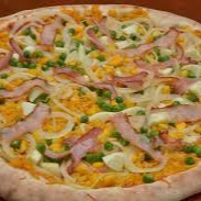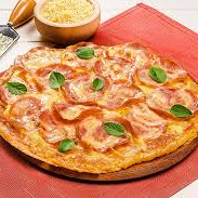 Molho, mussarela, bacon, presunto, ervilha, tomate, azeitona e orégano obs.: imagem ilustrativa