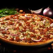 Molho, mussarela, peito de peru, catupiry, cebola, azeitona e orégano obs.: imagem ilustrativa