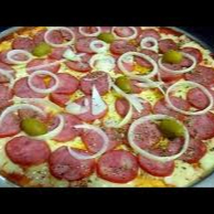 Molho, mussarela, calabresa, cebola, azeitona e orégano obs.: imagem ilustrativa