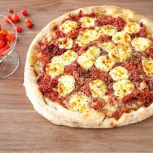 Molho, mussarela, carne seca, frango, calabresa, palmito, milho, azeitona e orégano Obs.: imagem ilustrativa