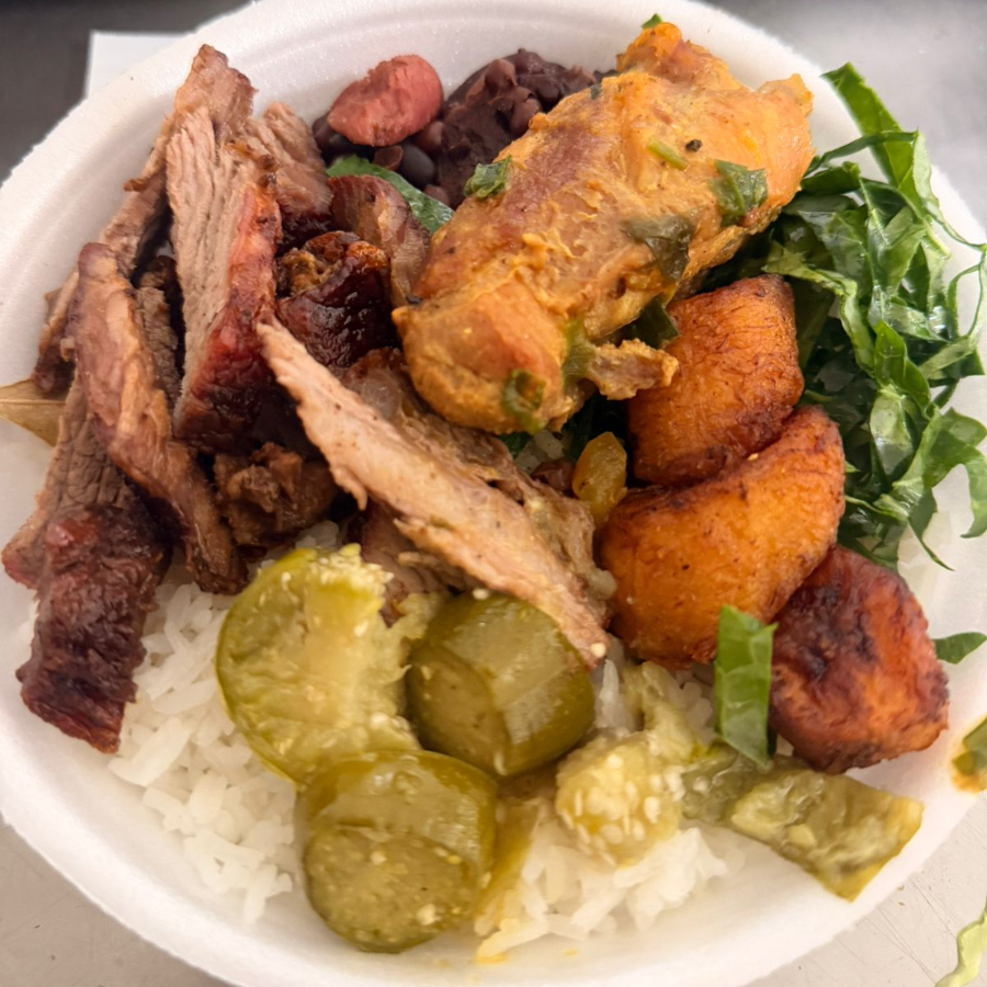 Churrasco todo dia? Aqui tem na nossa marmita especial! Arroz, tropeiro, vinagrete, churrasco e linguiça de frango assados na brasa. Tudo isso na marmita com 3 divisorias, caprichada e com o sabor que conquista!