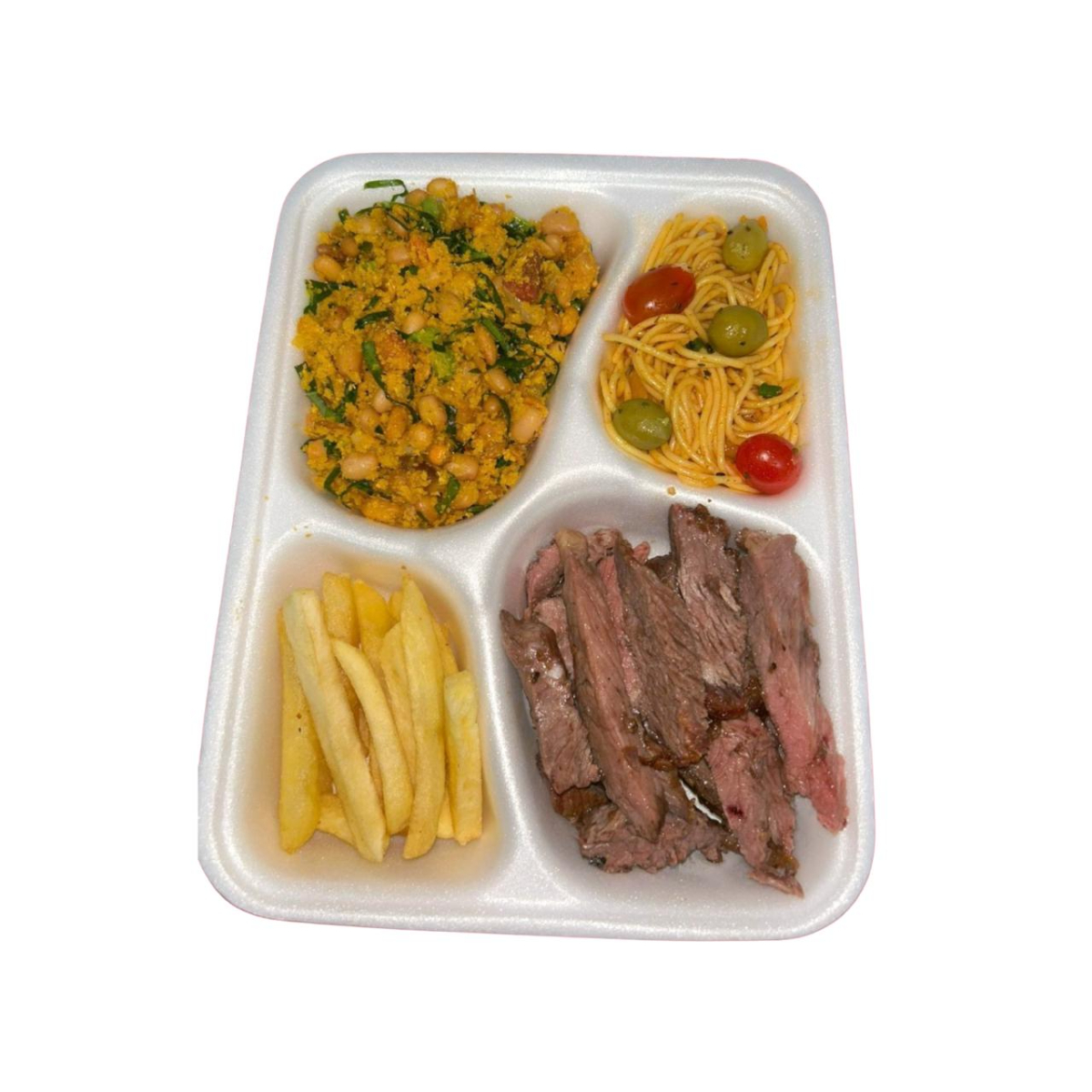 Marmitex com divisorias. Monte sua refeição do seu jeito! Escolha sua proteina preferida e complete com os acompanhamentos que mais gosta.
