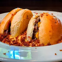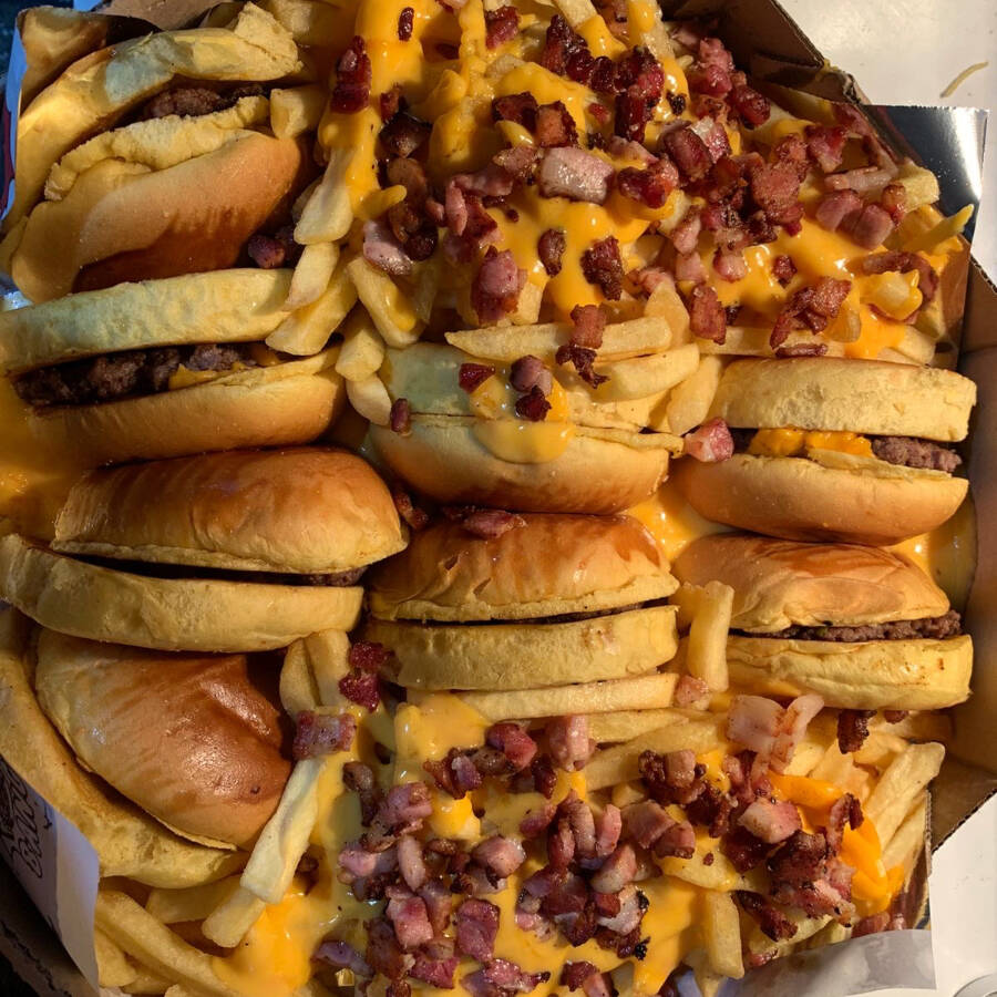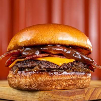 Pão brioche 2 hambúrguer de 120 g bacon molho da casa cebola roxa