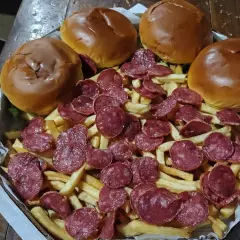 X Burguer: Pão, hambúrguer 120g, mussarela e molho.
