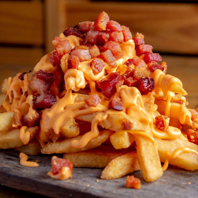 Batata Frita Mccain Surecrisp 250g Super Crocante por Fora e Macia por Dentro, Servida com Molho Cremoso de Cheddar e Bacon Granulado para um Sabor Irresistível.