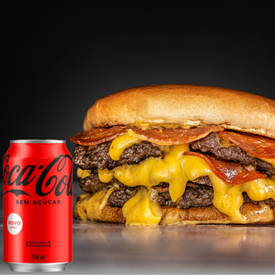 Smash Triplo 3x100gr, Cheddar Derretido, Bacon Crocante e molho da Casa + 1 Coca 200ml!!!