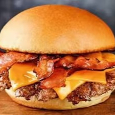 Hambúrguer 100gr coberto com cheddar derretido e fatias de Bacon Crocante e bastante Molho da Casa!!