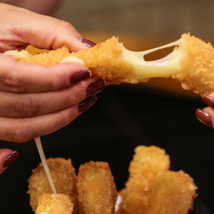 Muçarela Prime Empanada 300g com Derretimento Perfeito, Quentinha, Crocante por Fora e Macia por Dentro, Acompanhada de Molho Barbecue e Mel Fresco para uma Explosão de Sabores.