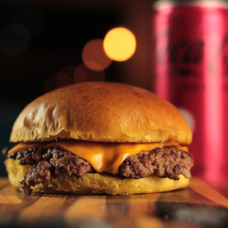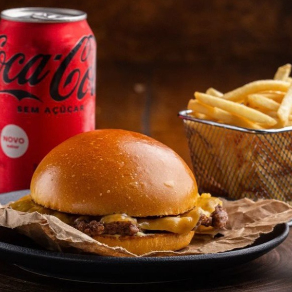 Hambúrguer Smash 100gr coberto de Cheddar Cremoso Super Molho Defumado + Coca 200ML. O Combo Perfeito!!