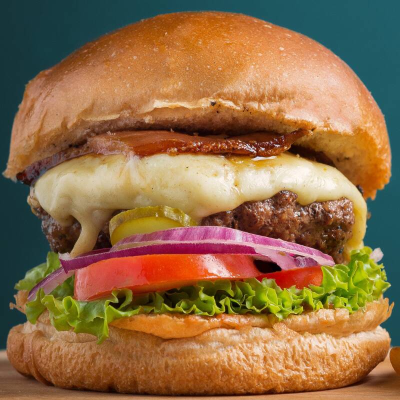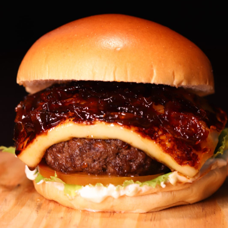 Hambúrguer 100gr com camadas de Cheddar, Camadas de Bacon em Cubos, Cebola Caramelizada e aquele Molho Especial da Casa !!!