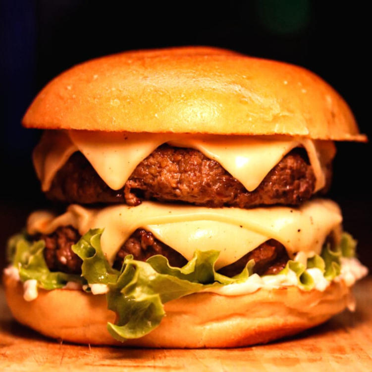 Hambúrguer Smash Duplo 130g com 4 Fatias de Cheddar Cremoso, Alface Crocante, Tomate e Molho Especial da Casa para um Sabor Duplamente Irresistível