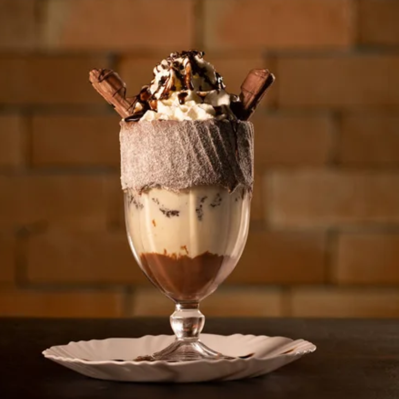 Sorvete com Muito Ovomaltine, Borda de Nutella com Ovomaltine, Calda de Chocolate. Perfeito para Amantes de Sabores Intensos.
