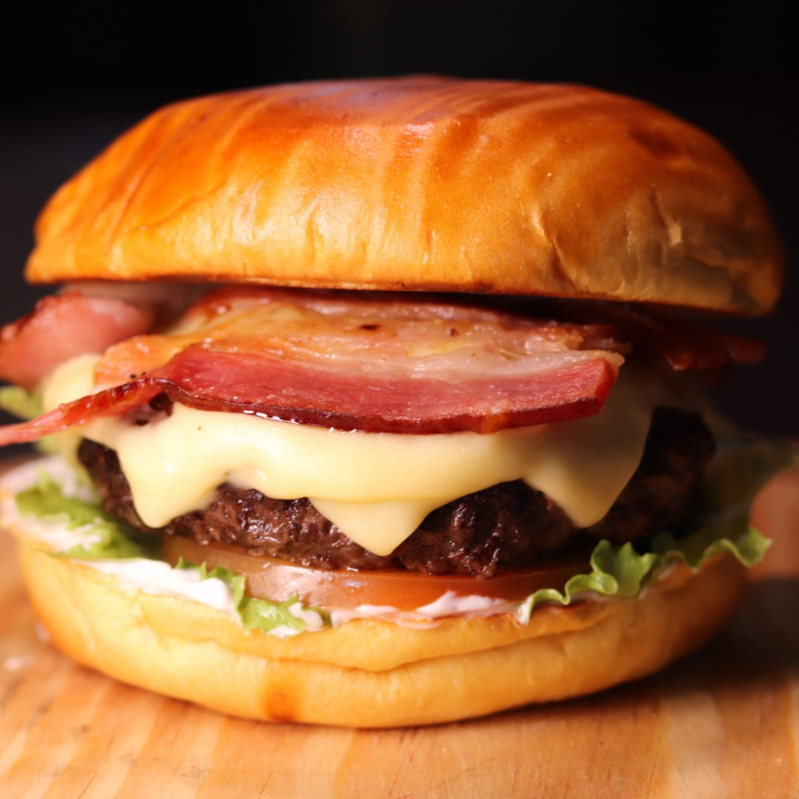 Hambúrguer Smash Duplo 2x100g Com Cheddar Derretido, Bacon Crocante e Molho Especial da Casa Para Uma Explosão de Sabor!