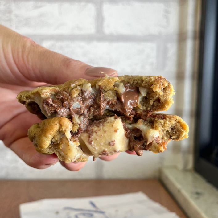 Massa de cookies tradicional, recheado de Nutella e brigadeiro de panela. 200 g