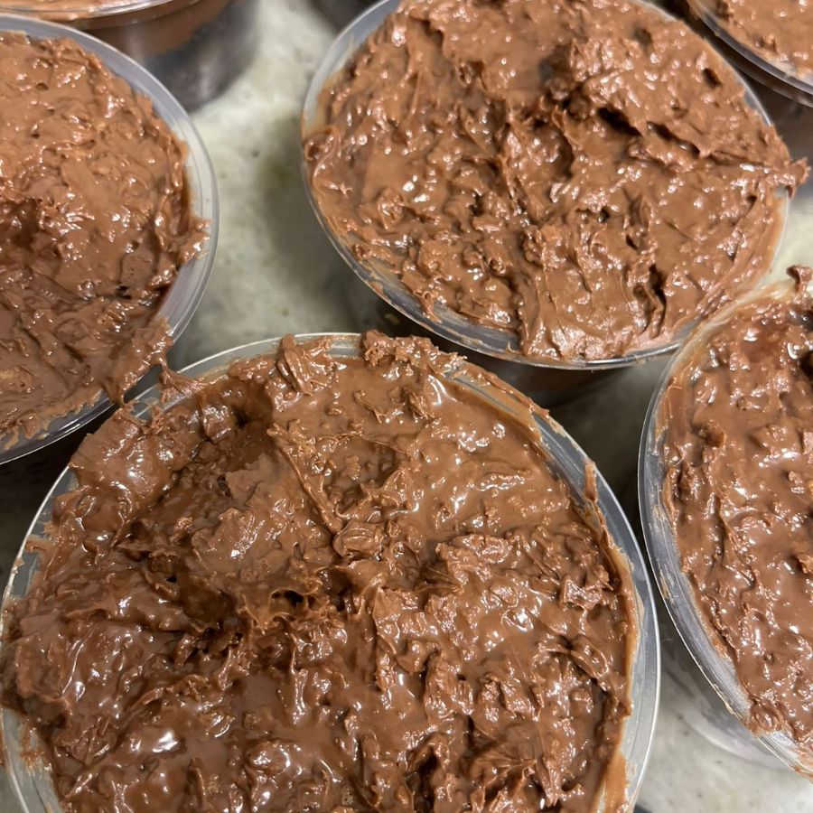 Massa de cacau, brigadeiro de panela e caramelo salgado. 260 g
