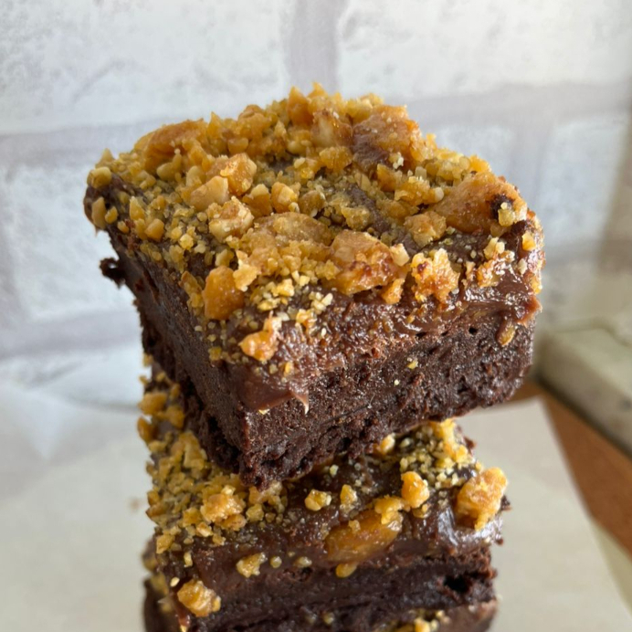 120 g de brownie, brigadeiro de panela e praline de castanhas.