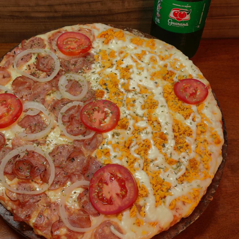 Pizza Grande Calabresa E Frango Catupiri + Guarana De 1 Litro