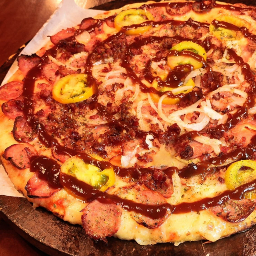 Pizza Calabresa Com Bacon E Barbcue Por Cima