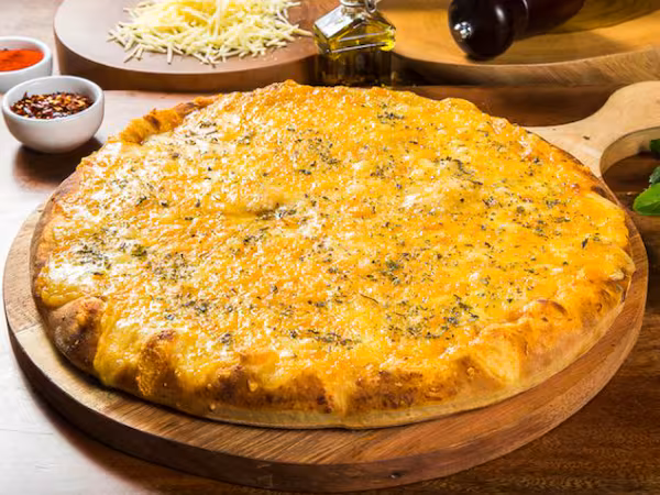 Molho, Muçarela, Catupiry, Cheddar, Ricota, Provolone Tomate, Azeitona e Orégano