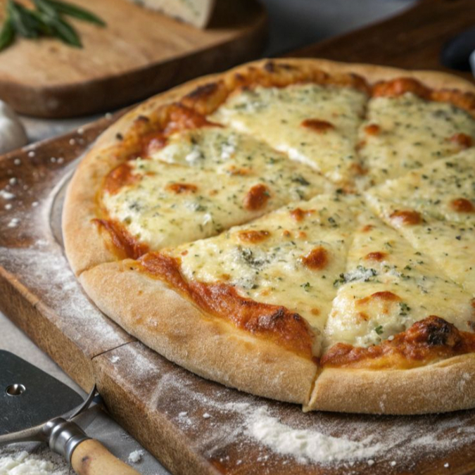 Molho, Muçarela, Catupiry, Cheddar, Ricota, Tomate, Azeitona e Orégano