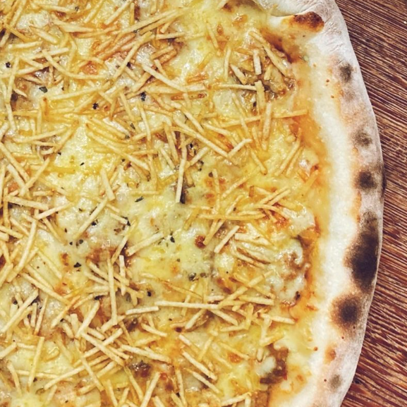 8 Pedaços - Creme de milho, frango, muçarela, batata palha, orégano. (Imagem meramente ilustrativa)