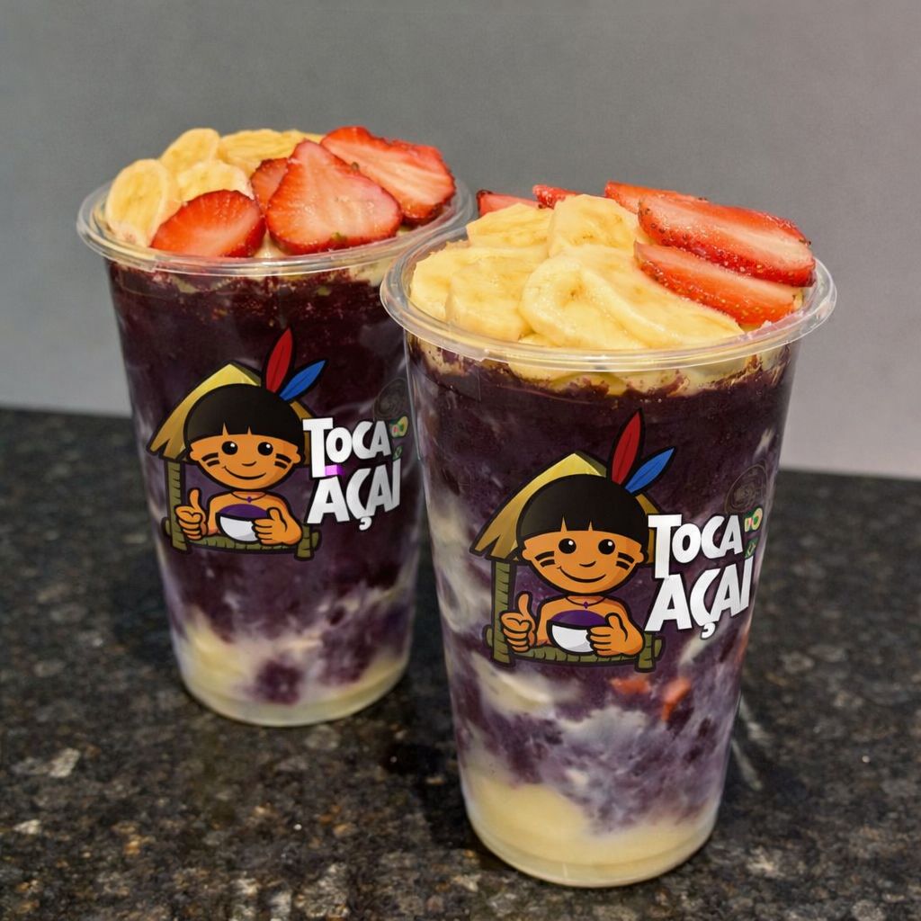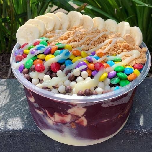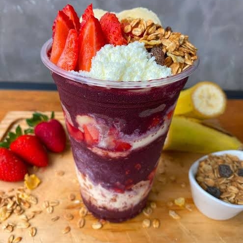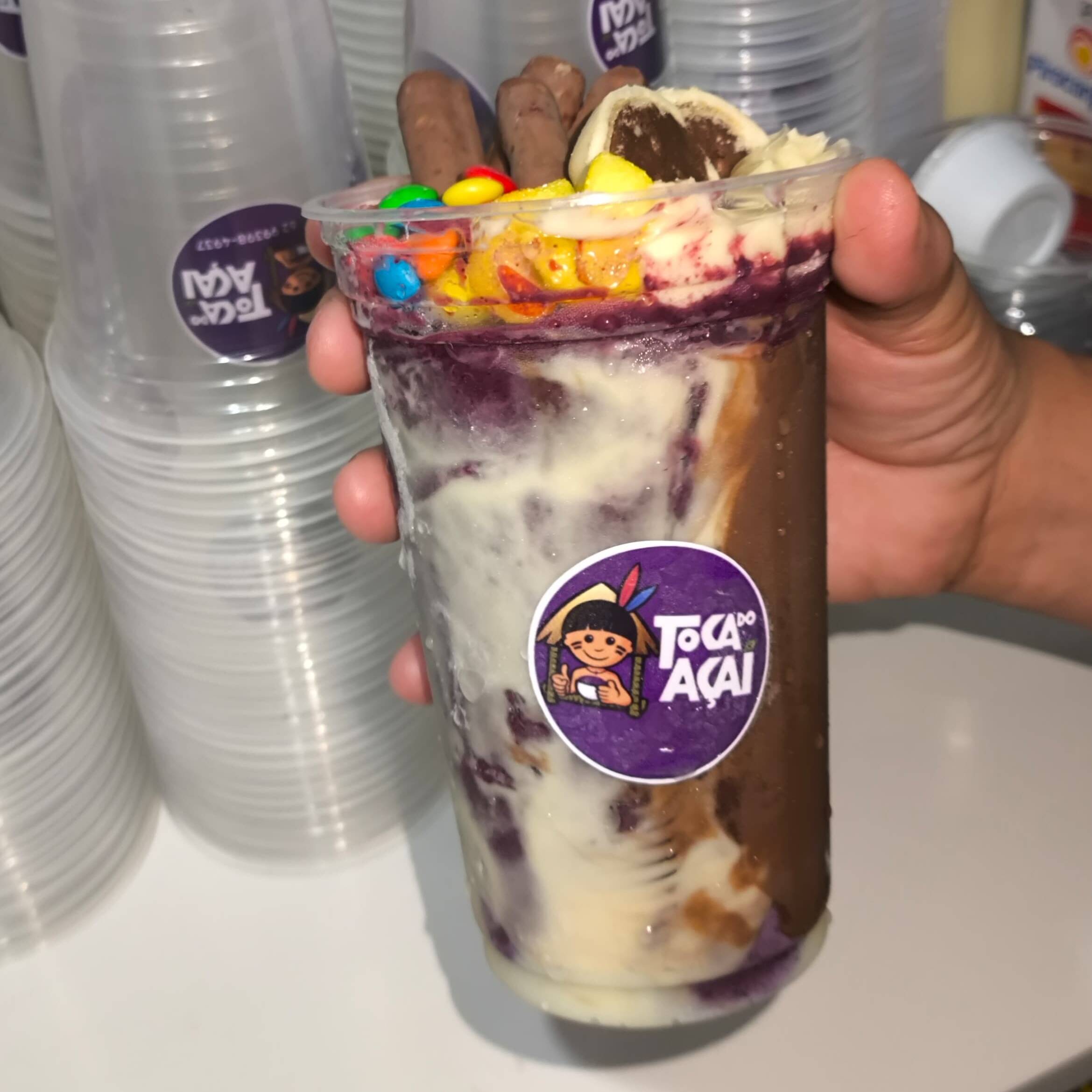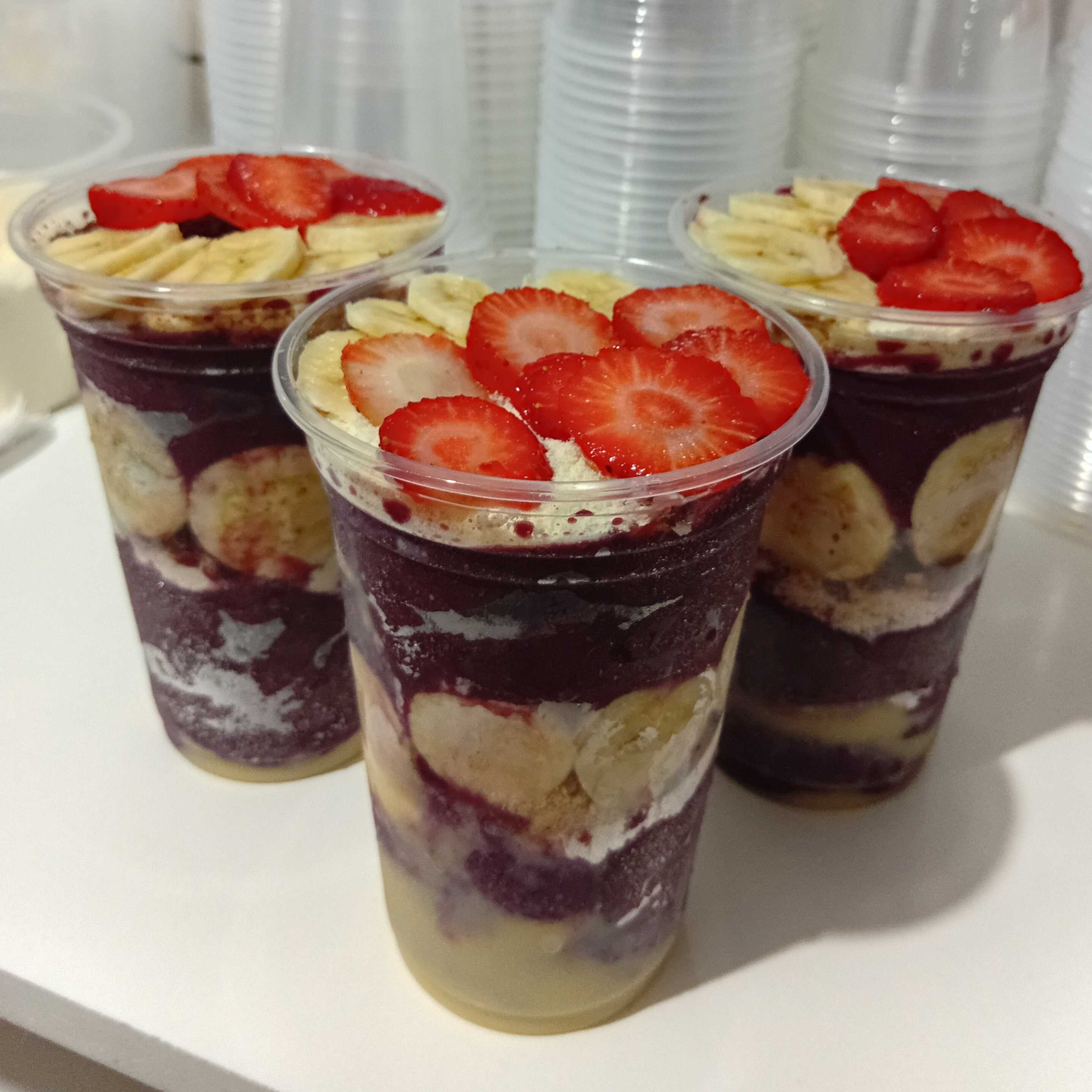 Acai com creme de ninho e creme de avela mas 3 adicionais gratis