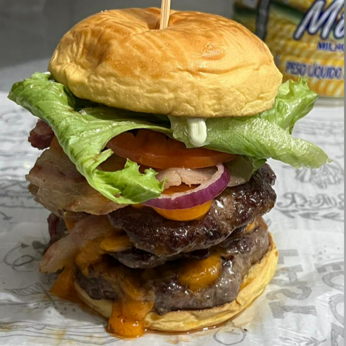 pao brioche 3x hamburguer 3x cheddar 3x bacon salada cebola roxa molho da casa