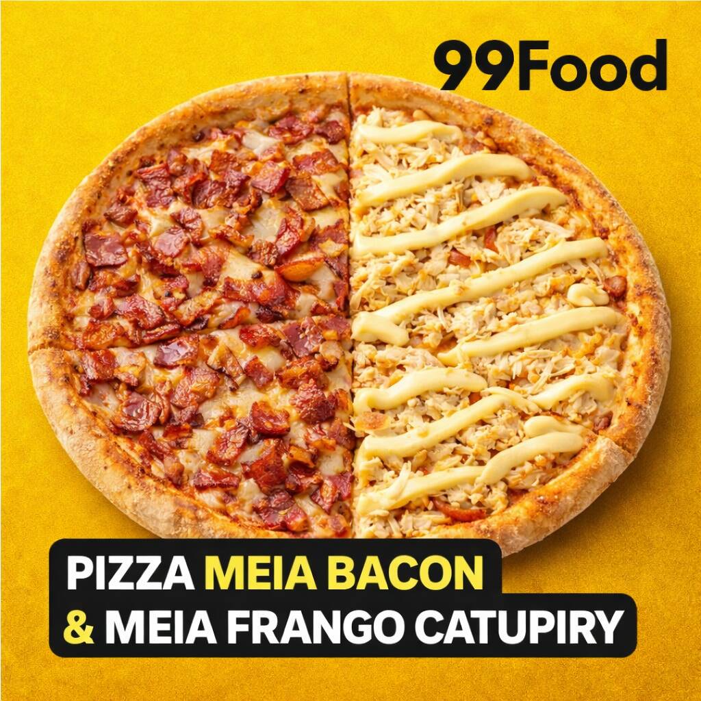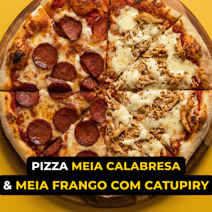 Metade calabresa tradicional, metade frango com bacon crocante, mussarela derretida e massa artesanal.