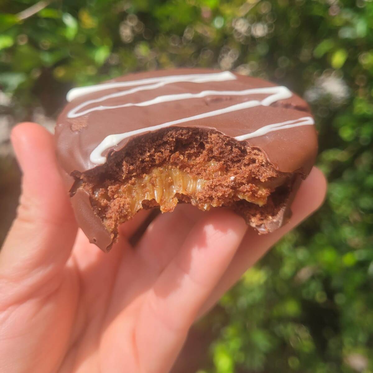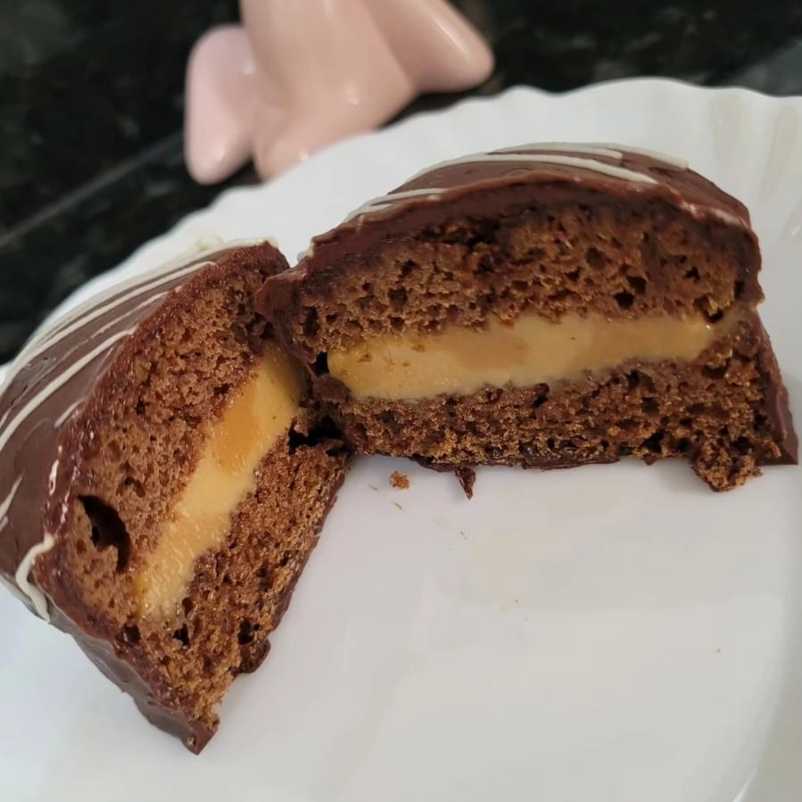 Uma delicia de Pão de Mel feito com massa artesanal, macio, bem fofinho, banhado no chocolate fracionado meio amargo (Genuine), com recheio de Doce de Leite.