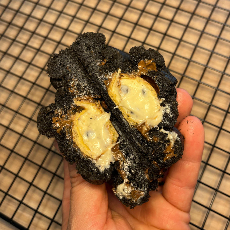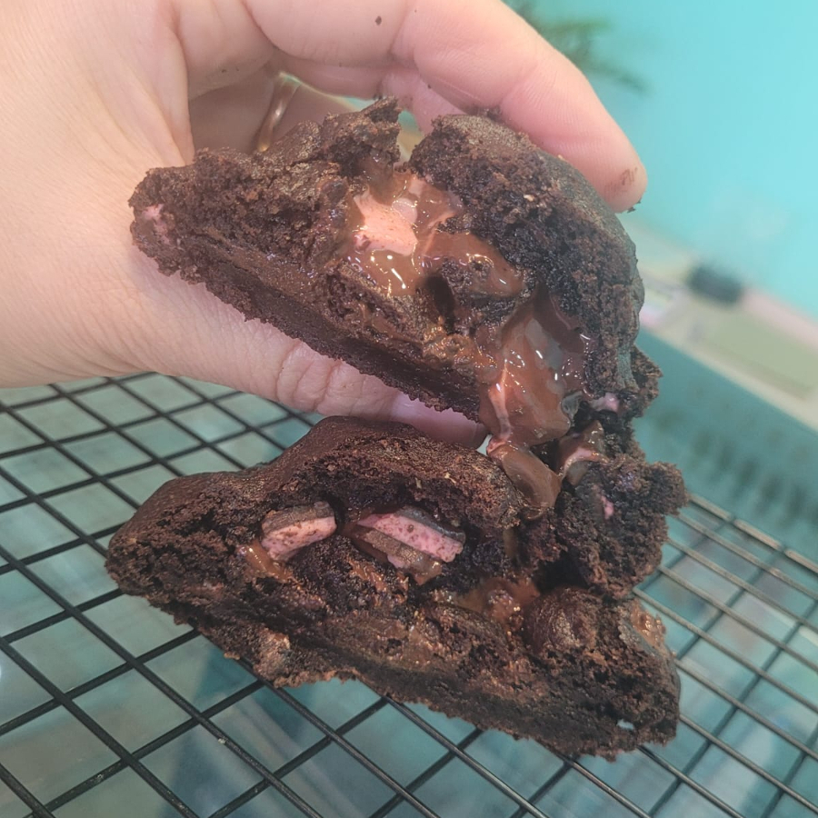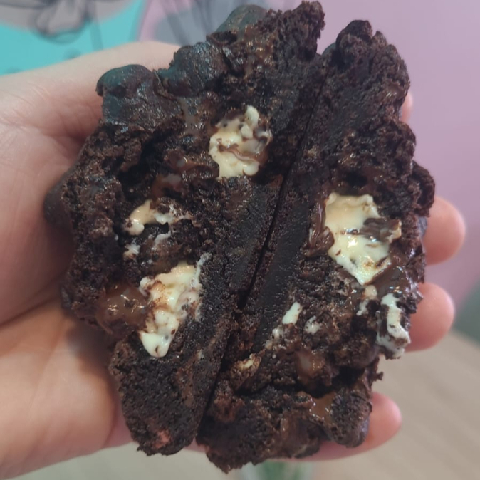 Massa de cookies Black com recheio de bombom oreo , macio por dentro e crocante por fora uma experiência incrível a cada mordida, aproximadamente 120g