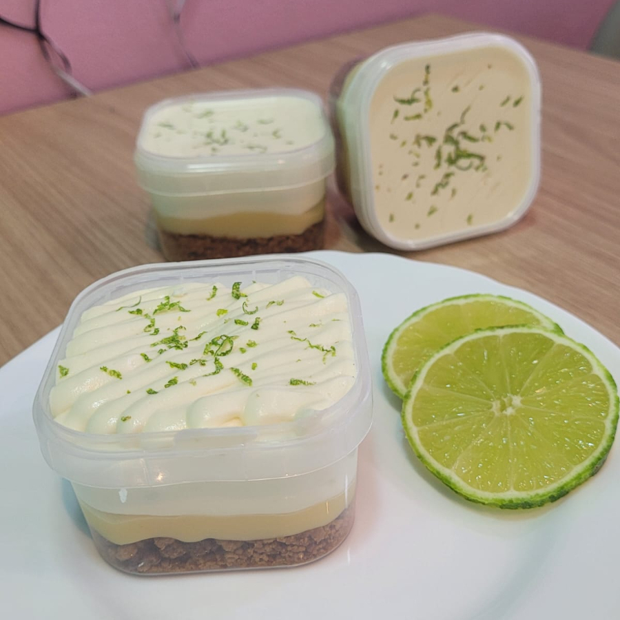Uma deliciosa torta de limao, uma camada de biscoito amanteigado super crocante com uma camada de brigadeiro branco bem cremoso , chantimouuse de limão e uma camada de chantilly na finalização , uma explosão de sabor. Aproximadamente 150g