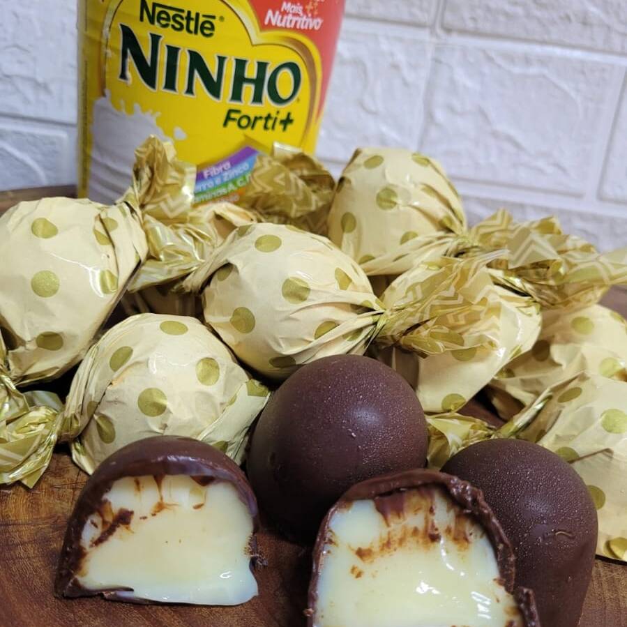 Brigadeiro cremoso de ninho cm uva verde sem semente e polvilhado no leite ninho apro 100g