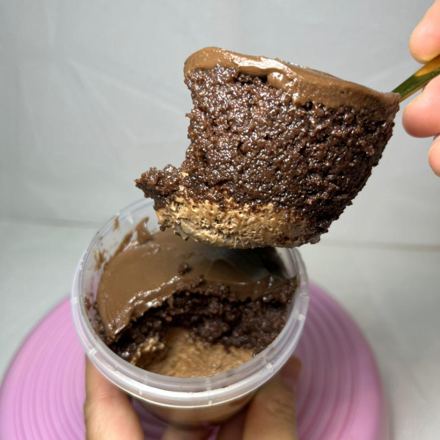 Nosso bolo no pote é super recheado cm camadas de brigadeiro cremoso uma camada de mousse de chocolate massa de chocolate 100% cacau molhadinha . Aproximadamente 230g
