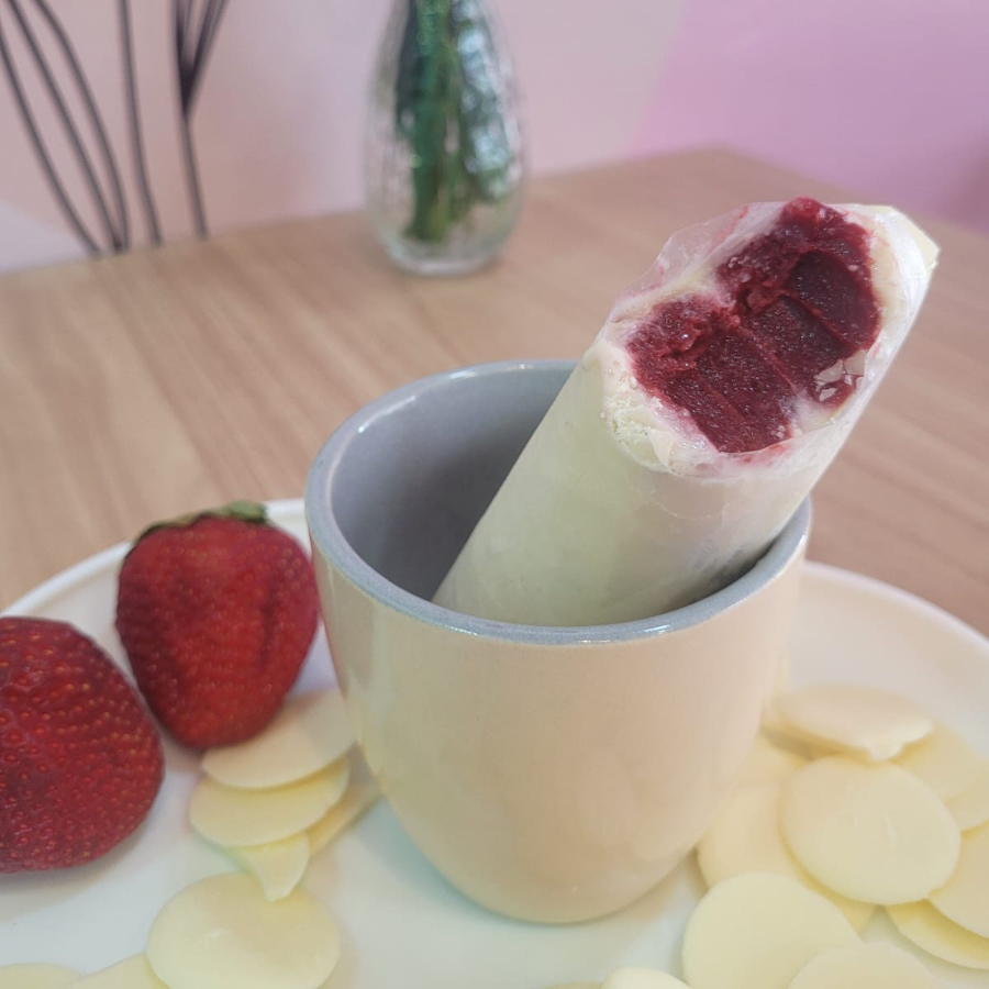 Geladinho Gourmet (chocolate Branco Com Morango)