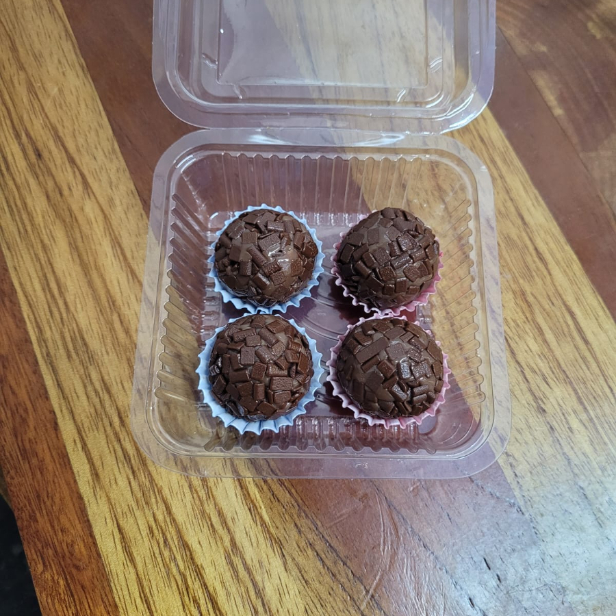 Caixa com 4 brigadeiros gourmet , brigadeiro cremoso com granulado de chocolate nobre.