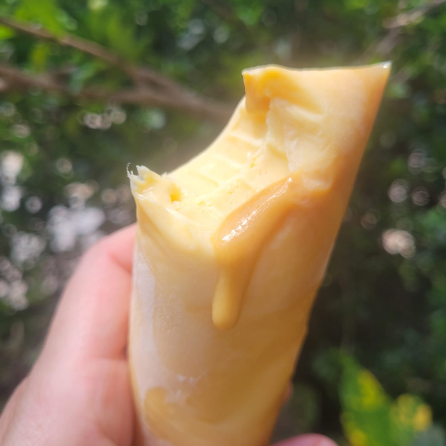 Um delicioso e cremoso geladinho sabor cupuaçu.