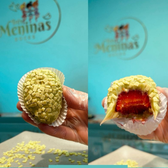 Divina coxinha de morango fresco envolvido por brigadeiro cremoso de pistache, finalizada com granulado nobre de pistache. --- tags --- entrega rápida, frete grátis, grátis, promoção, desconto, cupom, barato, melhor preço, preço baixo, 0,99, 0800, oferta, menor preço, combo, festa, família, evento, lanche, lanche rápido, porção, porções, combo com sobremesa, confeitaria, doceria, doces, bolos, recheado, bolo de pote, caseiro, artesanal, sobremesa, sobremesa natalina, aniversário, parabéns, presente, surpresa, gostoso, mousse, musse, pudim, afogadinho, brigadeiro, docinhos, brigadeirão, trufas, red velvet, Ninho, doce de leite, Prestígio, banoffee, Ouro Branco, Sonho de Valsa, Kinder Bueno, Ferrero Rocher, Kit Kat, Oreo, chocolate, morango, coco, leite condensado, leite Ninho, Nutella, ganache, bento cake, cascão, cone trufado, dois amores, copo da felicidade, brownie, mini, cupcake, vulcão, piscina, cheesecake, morango do amor