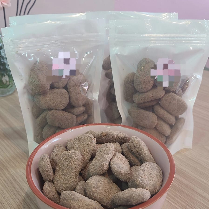 Bolachinha amanteigada banhado no chocolate branco e leite ninho uma experiência incrível, que derrete na boca impossível comer só uma. Aproximadamente 130g ou 28 bolachinhas.
