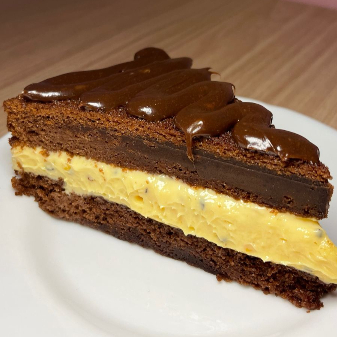 Massa de chocolate recheio de maracujá cremoso e brigadeiro cremoso por cima aproximadamente 350g
