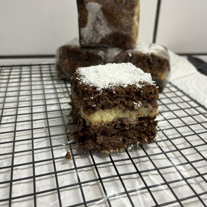 Bolo gelado ( Prestigio ) Massa de chocolate molhadinha com recheio de coco.