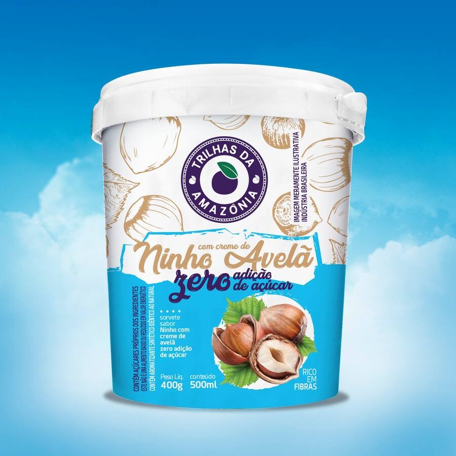 Sorvete Ninho com creme de avelã zero adição de açúcar. Pote 500ml