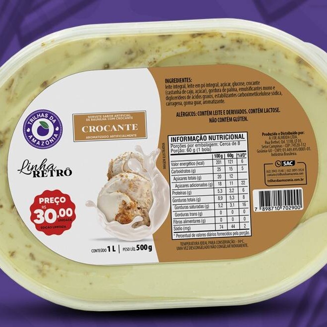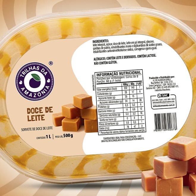 Sorvete sabor creme com pedacinhos crocantes de caramelo que trazem uma textura irresistível. Uma combinação perfeita de cremosidade e sabor que conquista no primeiro toque. Alérgicos: Contém Leite E Derivados. (Obs: O valor de 30,00 reais, somente em uma Loja Física Trilhas da Amazônia)