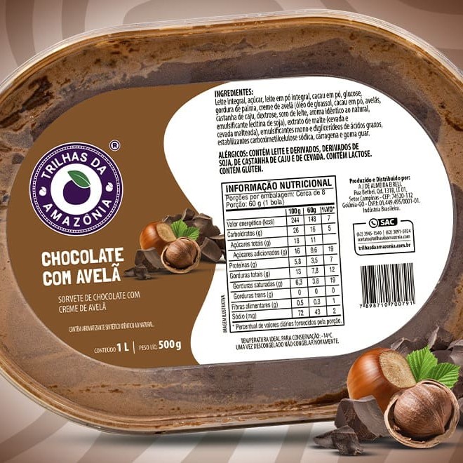 Cremoso, com pedacinhos de chocolate que derretem na boca. Um clássico que nunca sai de moda e continua conquistando todas as gerações. Alérgicos: Contém leite e derivados, e derivados de soja. (Obs: O valor de 5,00 reais, somente em uma Loja Física Trilhas da Amazônia)