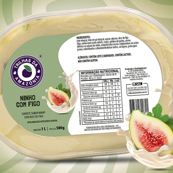 Na Trilhas da Amazônia, você encontra diversas combinações com Ninho, e uma delas é com figo. Nosso Sorvete de Ninho com Figo além de ser super cremoso, vem com pedacinhos de figo. Simplesmente delicioso! Alérgicos: Contém leite e derivados.