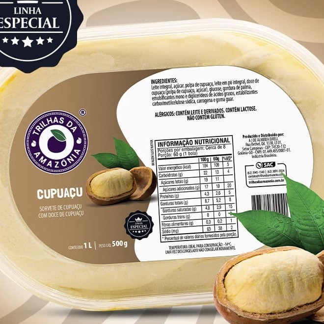 O cupuaçu é um queridinho da região Norte que conquistou o Brasil com seu sabor marcante e único. E é claro que a Trilhas da Amazônia transformou essa delícia em um sorvete irresistível. Uma verdadeira explosão de sabor. Experimente e se surpreenda. Alérgicos: Contém leite e derivados.