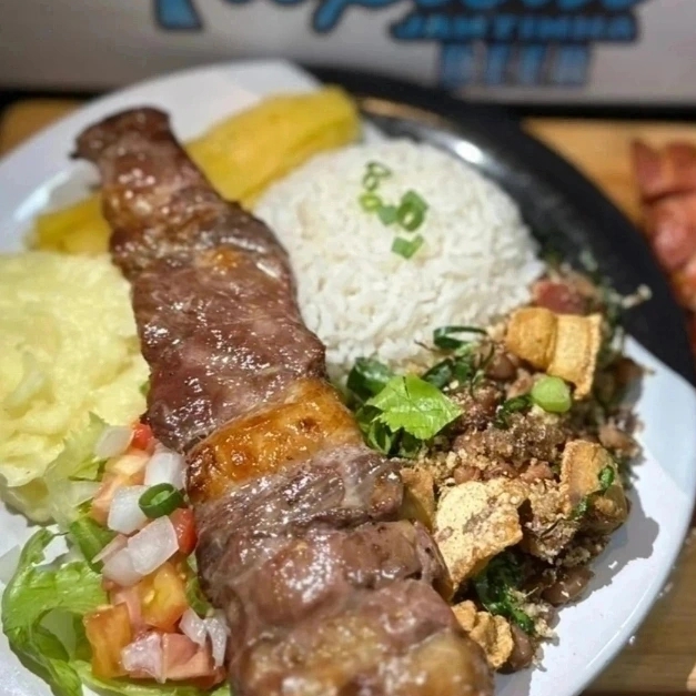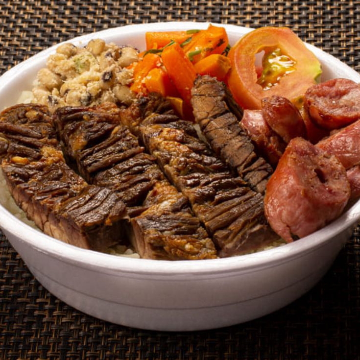 ARROZ FEIJAO TROPEIRO CARNE E LINGUIÇA ASSADA MACARRAO