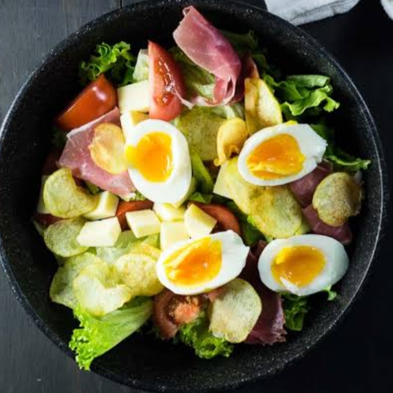 Ovo cozido Bife de Frango ou Bovino Alface tomate repolho couve foto ilustrativa