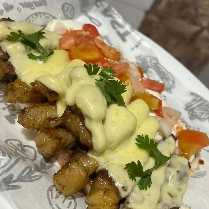fraldinha desfiada , crean chease , mussarela, vinagrete, molho de alho, cheiro verde