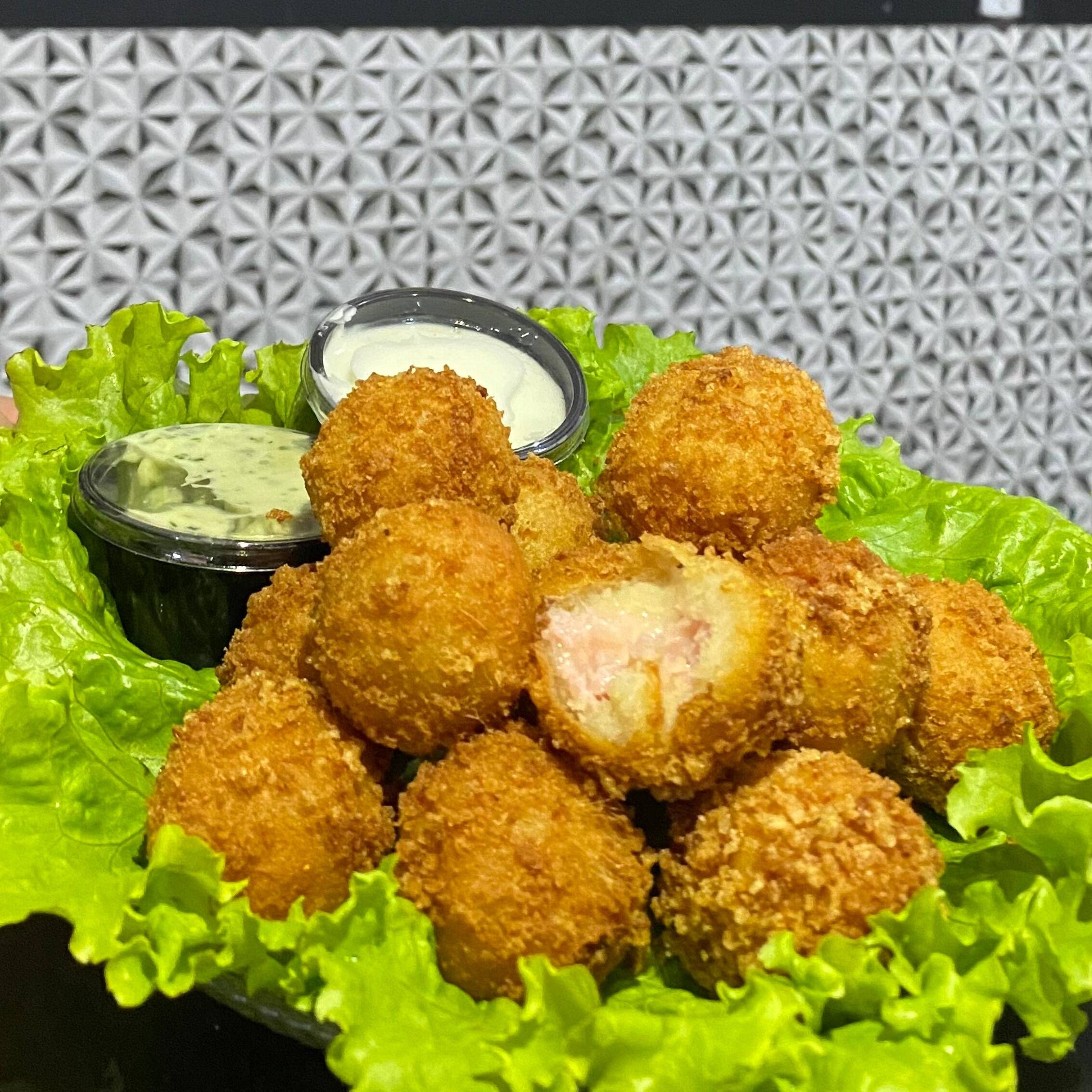 2 SANDUICHES , 500 GR DE BATATA COM CHEDDAR E BACON , 4 BOLINHO DE CARNE SECA- 4 BOLNHO DE PIZZA , ENROLADINHO DE SALSICHA